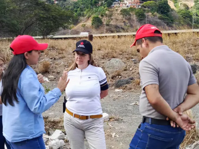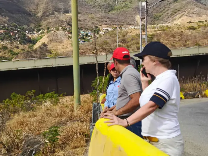 Durante la inspección la Vicepresidenta estuvo acompañada por la VA. María Elisa Domínguez Velasco, Secretaria para el Desarrollo Económico de la Alcaldía de Caracas y Presidenta de la Corporación de Desarrollo Económico Caracas Productiva y el Director General de la CVAUP, Juan Irima, acompañaron la obtención de las mediciones topográficas que permitirán definir la poligonal del corredor.