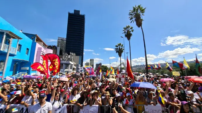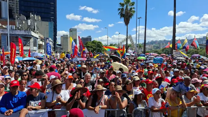 A siete días del secuestro del Presidente Maduro y la Primera Dama, el pueblo venezolano sigue activo en las calles para alzar su voz en favor de la justicia y el respeto a la voluntad popular, con banderas en alto y consignas de lucha resonaron en el recorrido de la Gran Marcha de los Movimientos Sociales, que partió desde el Monumento de la Resistencia Indígena en Plaza Venezuela y culminó en la esquina de San Francisco, en la Av. Universidad.