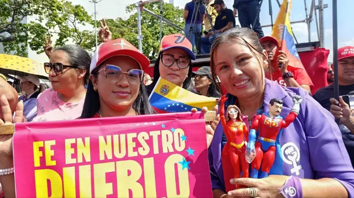 Voceras de diversos movimientos sociales declararon: "Estamos aquí en nombre de todas las mujeres que tienen pérdidas familiares, diciéndole a Trump que respete a Venezuela. Venezuela se respeta como nos hizo ver Bolívar, como nos hizo ver nuestro presidente Chávez y ahora nuestro presidente Nicolás Maduro", así afirmó Marín Espinoza, vocera del Territorio Comunal Plaza.